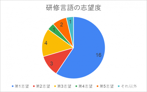 なんと、半数以上の方が第1志望の研修言語に任命されていました!!志望言語は受験段階で提出しますが、それを最大限尊重して頂けることが分かりますね。後悔のないように自分のやりたい言語をしっかりと伝えることが大事だと思いました。
