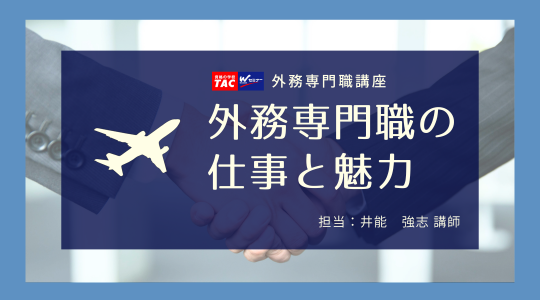 TAC外務専門職講座 担任の井能講師がスペシャリスト外交官(外務専門職)の仕事内容や魅力を約15分で分かりやすくご紹介いたします。