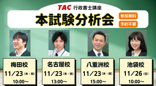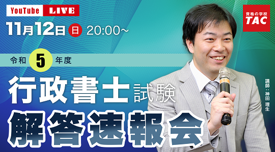 TACの精鋭講師陣が本試験当日に今年度の本試験問題を検討し、速報で「今年の出題傾向」「各科目の所感」「記述式問題の予想解答・ポイント」などをライブ配信します。(無料・予約不要)