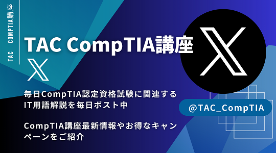 TAC CompTIA講座の公式X(旧Twitter)アカウントです。TACでは、2001年以前よりCompTIA認定資格に取り組み、受講者様の学習をサポートしております。