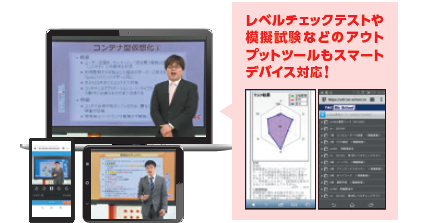 通信メディアはスマートデバイス対応。パソコンの他にスマートフォン、タブレット端末からでも自分のペースに合わせて、24時間いつでも何度でも繰り返し受講できます。