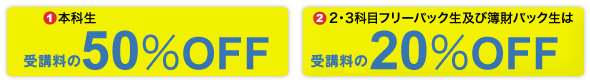 9月(5月)、1月に開講する各コースを1科目のみ受講する「単科生」につきましては割引対象外となります。