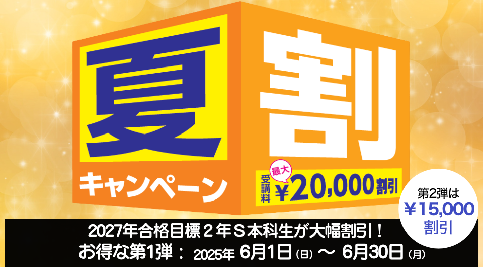 - 夏割キャンペーン【第2弾】は期間:2025年7月1日(火)~8月31日(日) (郵送の場合は当日の消印有効)で受講料は最大15,000円割引の内容です。