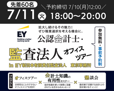 オフィス内の見学やEY監査法人での実際の仕事内容などを聞くことが:できる絶好のチャンスです。