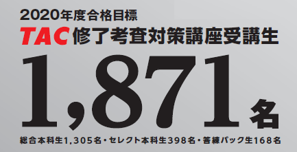 修了考査もやっぱりTAC! 多くの合格者から支持されるTACの修了考査対策。1,700名を超える受講生の方に選ばれています。 |