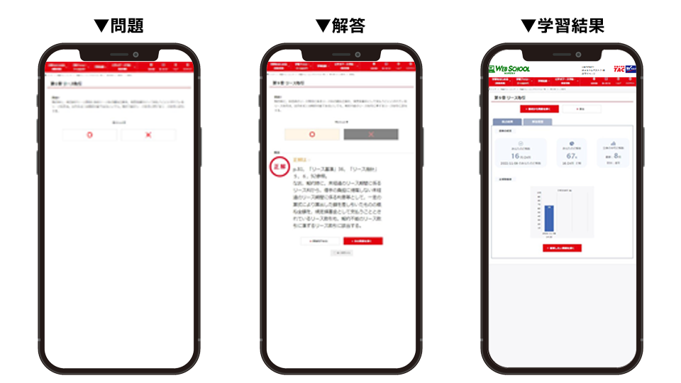 TACでは、受講生の皆さまの学習をサポートする「Webトレーニング」のご提供をTAC WEB SCHOOLにて開始いたします。短答式試験対策として紙媒体の問題集に加え、Web学習ならではの利便性を組み合わせることで、効率的・効果的な学習を加速させます。学習環境の向上に、ぜひお役立てください。