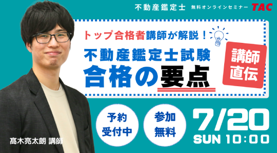 TAC不動産鑑定士講座の公式YouTubeアカウントです。合格を目指す方に向けて、学習に役立つコンテンツをお届けしていきます。チャンネル登録お願いします!