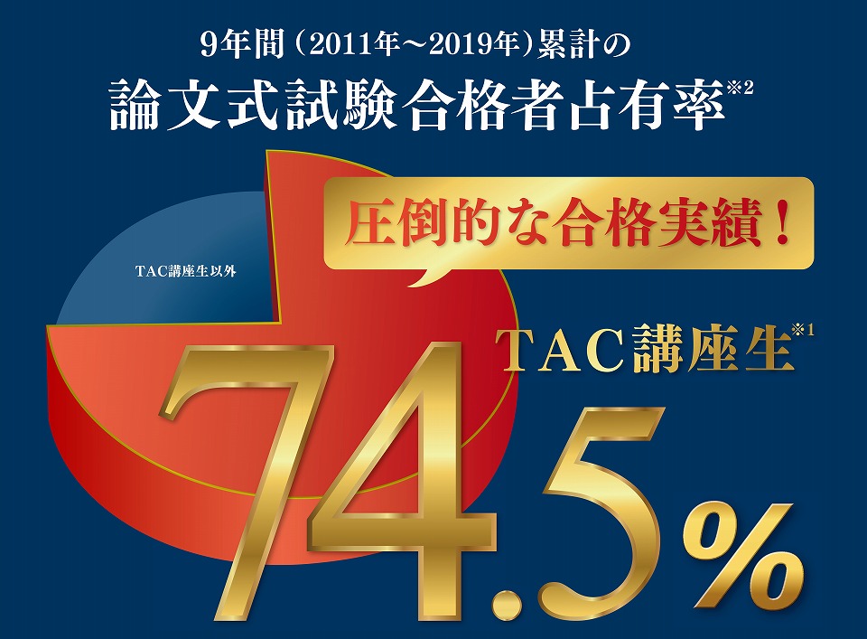 長年に亘って高い合格率を維持されていることからTACを選びました。学習Webページ、特にWeb視聴の操作性が良いです。Web質問に対する回答も早く、丁寧でわかりやすかったです。 仕事の都合で2年目の論文試験を受けれず、3年目も予備校を利用しました。不満が無かったので3年目もTACを選びました。