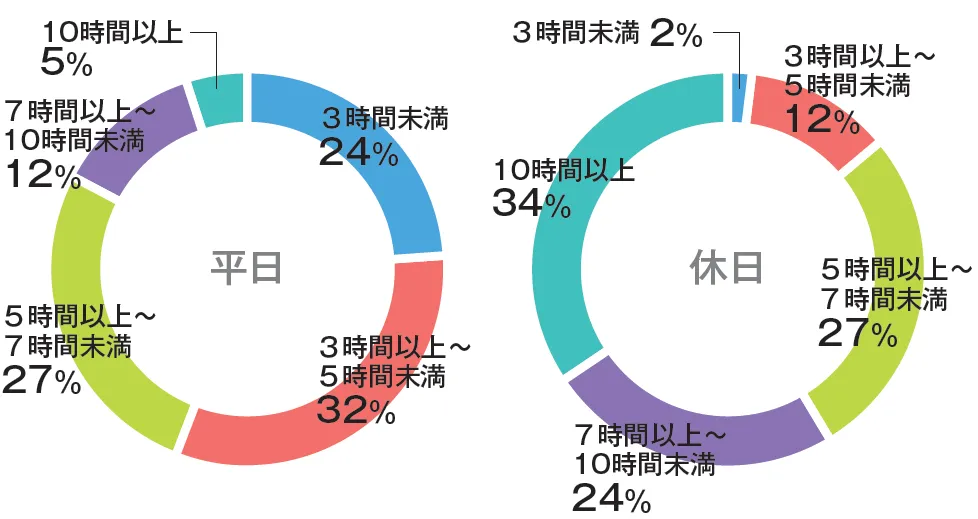 半数程度の人が平日に4~5時間程度の勉強時間を充てているね。