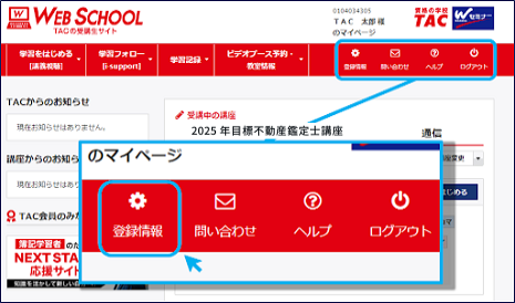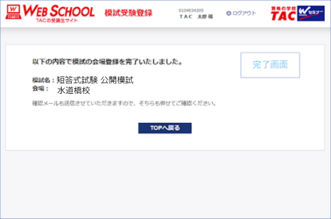 - 本サイトでの手続き完了時などを含めメールを送信させていただきます。送信先のメールアドレスはTAC WEB SCHOOLマイページ登録時にご登録いただいたメールアドレスです。