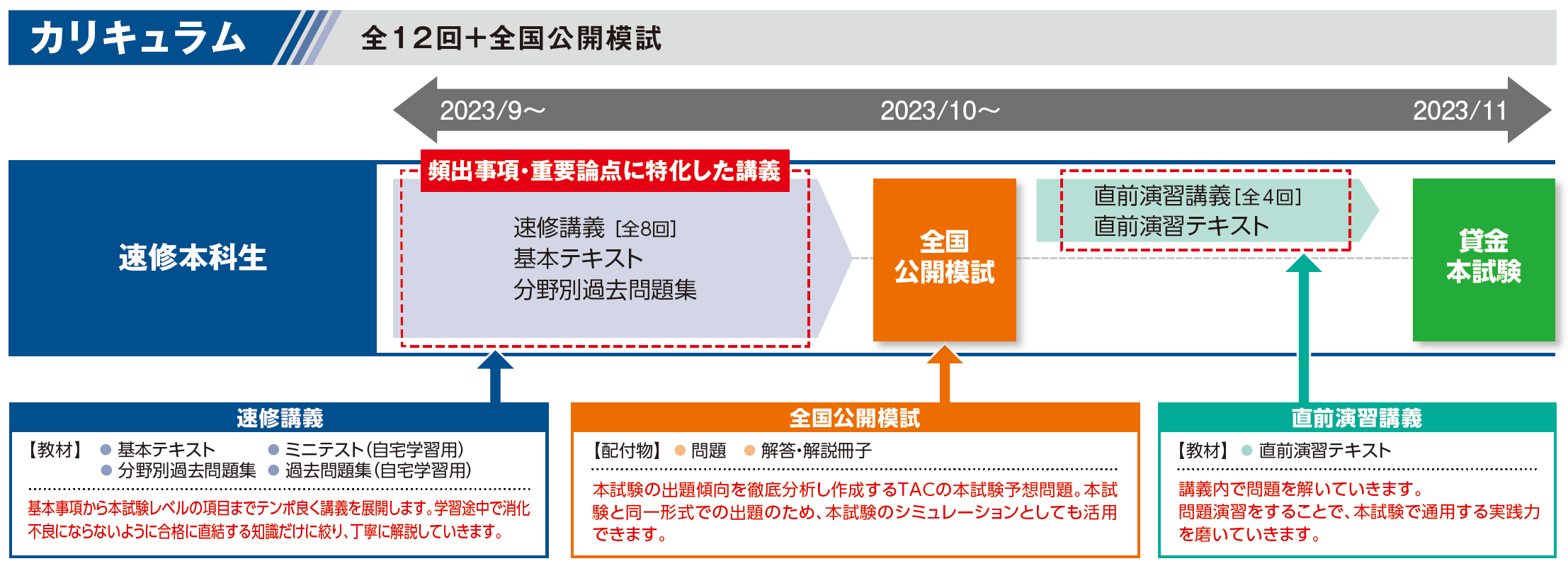 本試験の出題傾向を徹底分析し作成するTACの本試験予想問題。本試験と同一形式での出題のため、本試験のシミュレーションとしても活用できます。