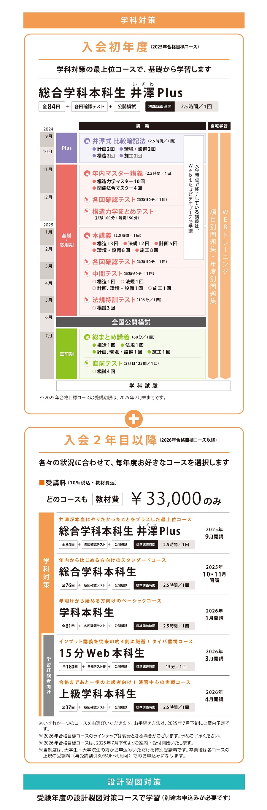 [2年目以降]ご自身の状況に合わせて、毎年度お好きなコースを選択してください。2年目以降は、いずれのコースも教材費のみ(33,000円税込)で受講していただけます。