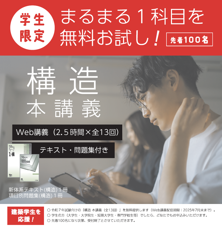 〇 2026年受験者向けの「構造力学マスター講義(全10回)」を無料提供します。(Web講義配信期限:2026年7月末まで)