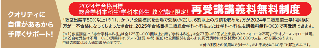 ・同一級に限ります。また、他の割引制度との併用はできません(TAC取扱代理店[大学生協・書店等]割引は除く)。