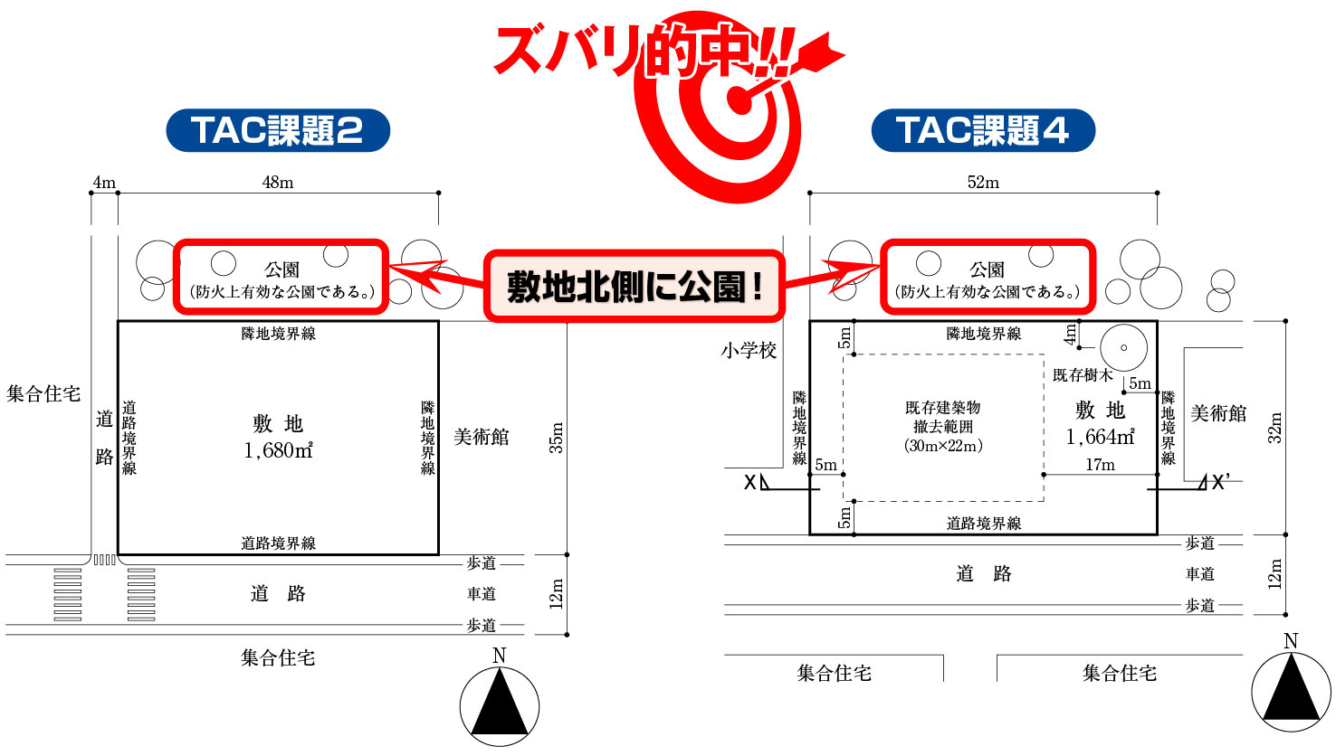 TACでは、多くの課題が2面道路(角地)の敷地で、本試験と同様の検討が必要な条件で学習していました!