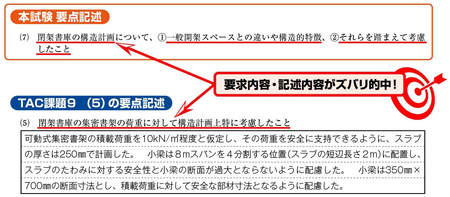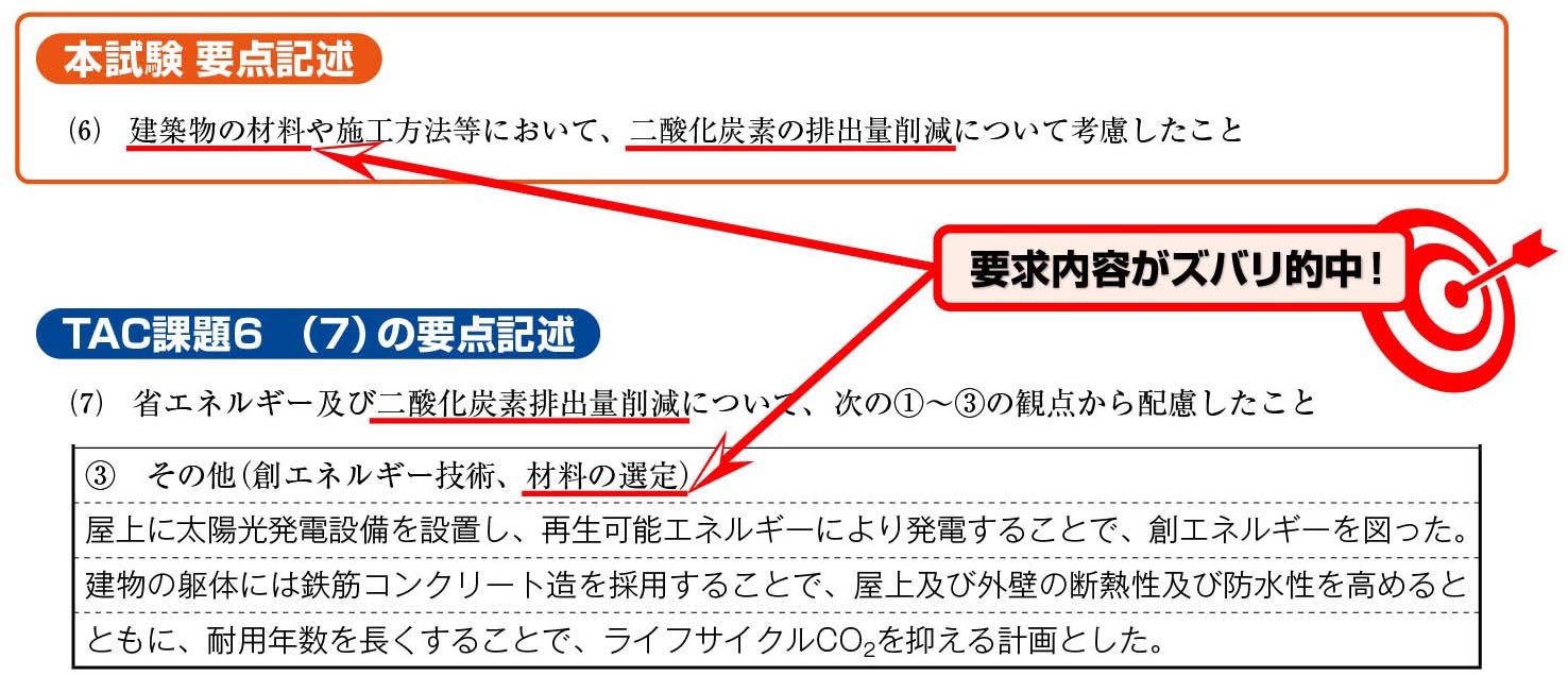 本試験で出題された「計画の要点」に対して、TACの課題で特に学習効果があったと思われるものについては、以下の通りです。