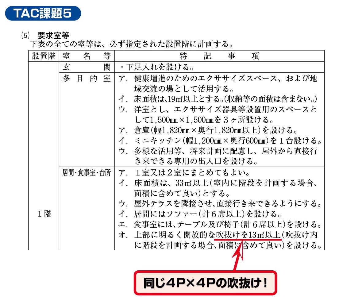 TACでは、同規模・類似条件のLDK(居間・食事室・台所)を「課題1」で学習していました。