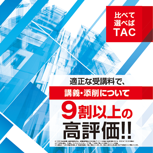 - 本試験は、TACの講義内容の要素が全て詰め込まれていたような内容だった。指導も非常に充実していた。(Uさん)