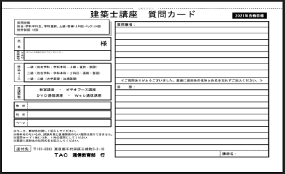 横浜の土曜クラスで受講しました。講師2名とも、添削も課題内容も、丁寧でわかりやすい解説で、昨年受講していた他の受験指導校よりも、かなり有益な試験学習となりました。他の受験指導校では通学者のWeb動画の視聴等が手薄なのに対し、TACではどこでもWeb動画が視聴できます。結果、隙間時間を有効に活用でき、コスパが最高だと感じました。昨年は初受験で、とにかく詰め込みましたが、今年は昨年の反省を生かし、過去問研究から始めることで、試験元が何を求めているのかを把握し、エスキスを作図の2倍以上こなしたことで合格できたと思います。