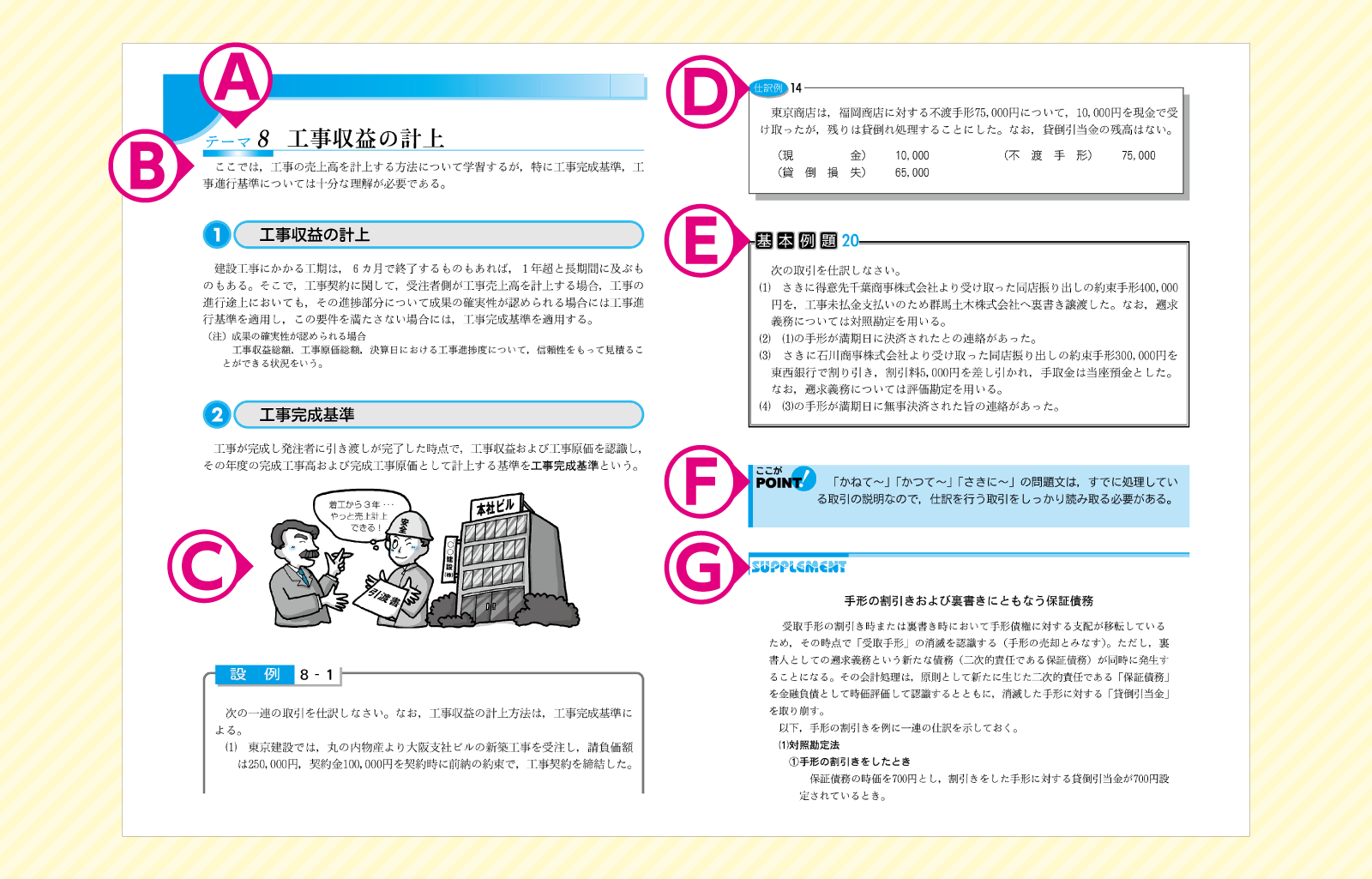各論点には「仕訳例」や「説例」を示してあるので、これにしたがって学習を進めることで、無理なく内容を理解することができます。