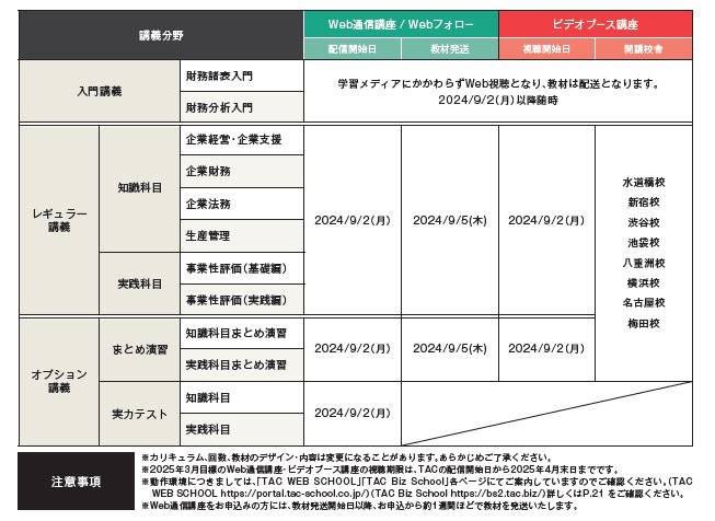 講義配信・教材発送日程の詳細は、日程表にてご確認ください。