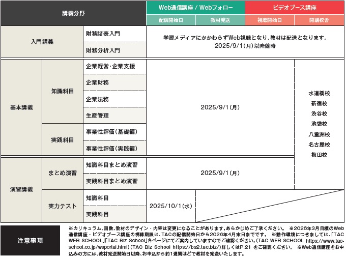 講義配信・教材発送日程の詳細は、日程表にてご確認ください。