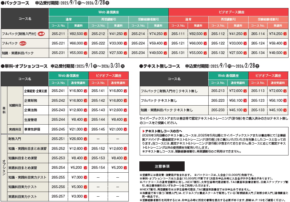 Web通信講座の配信期限は、TACの配信開始日から2026年4月末日までとなります。