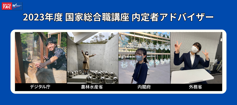 2025年度の国家総合職試験に見事合格し、内定を獲得したTAC生が、今年も内定者アドバイザーとして着任しました。学習方法や面接・官庁訪問対策など、受験経験を活かした貴重なアドバイスをくれる心強い先輩達です。