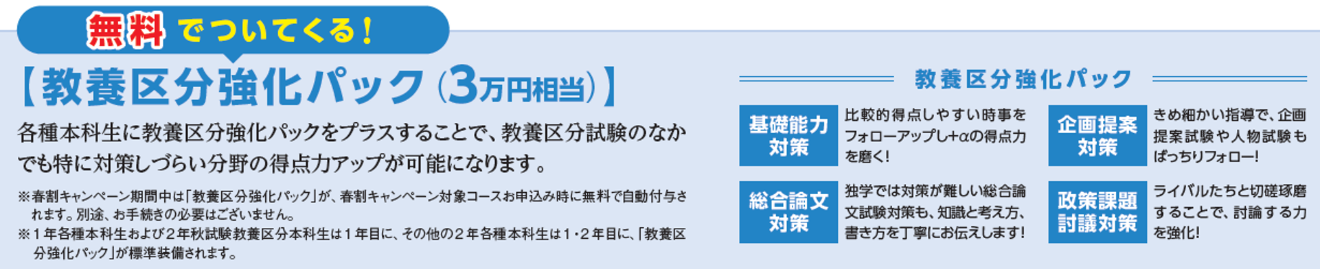 さらに「教養区分強化パック(3万円相当)」が無料でついてくる!!