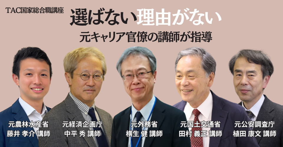 TAC国家総合職講座の講義を担当するのは、面接などの人物試験対策は元キャリア官僚と担任講師、筆記試験対策は国家総合職試験を知り尽くしたの受験指導のプロ講師です。毎年、たくさんの国家総合職試験の最終合格&内定者を輩出してきた講師陣の講義・人物試験対策を受講すれば、効果的に最終合格&内定を目指すことができます。