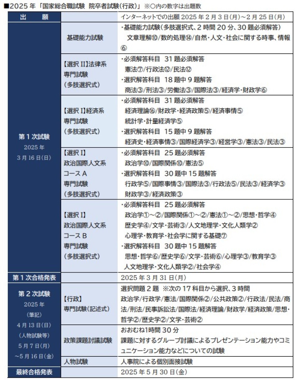 <院卒者試験>法文系 試験内容、実施スケジュール