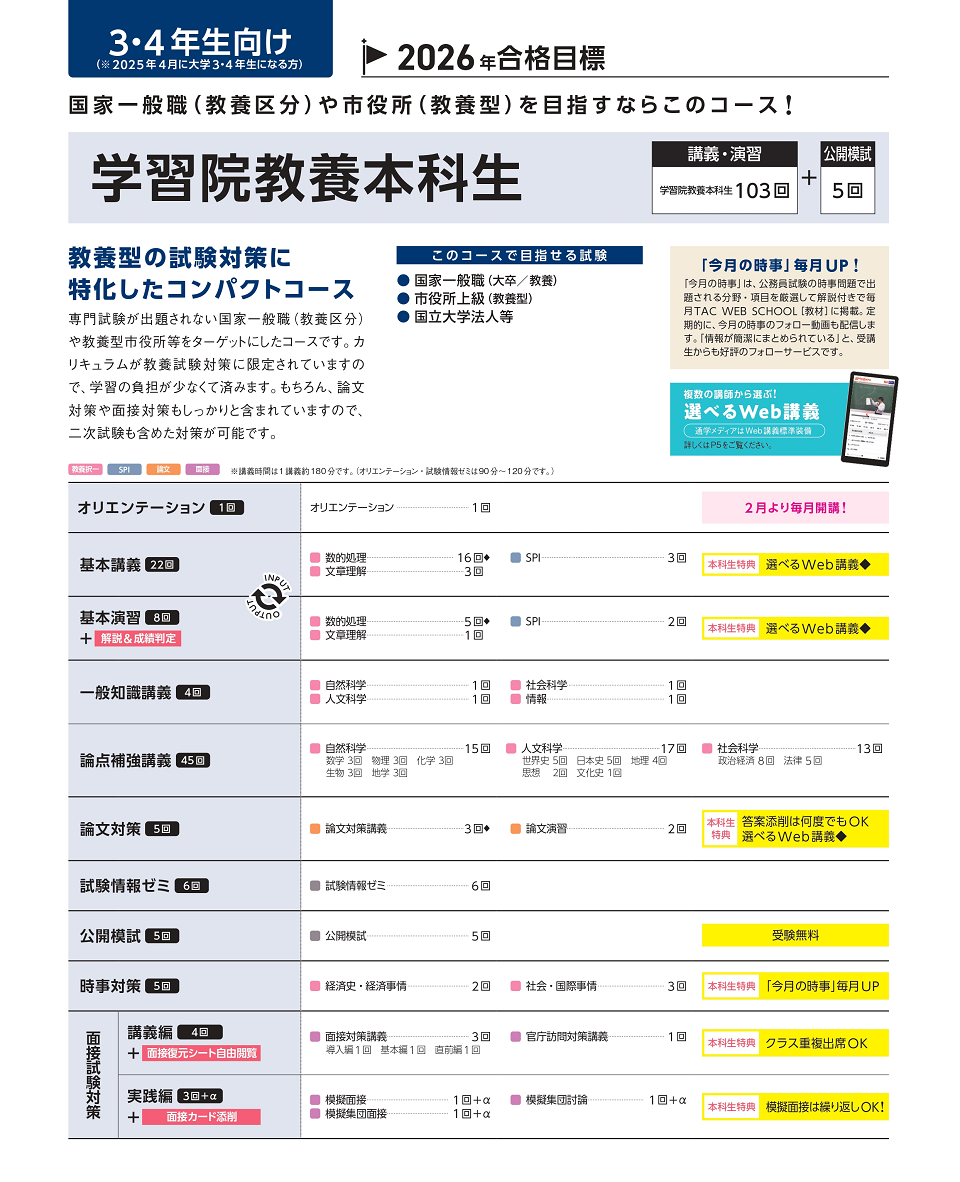 <2026年合格目標>大学新3・4年生・卒業生向け:学習院本科生/学習院本科生プレミアム/学習院教養本科生