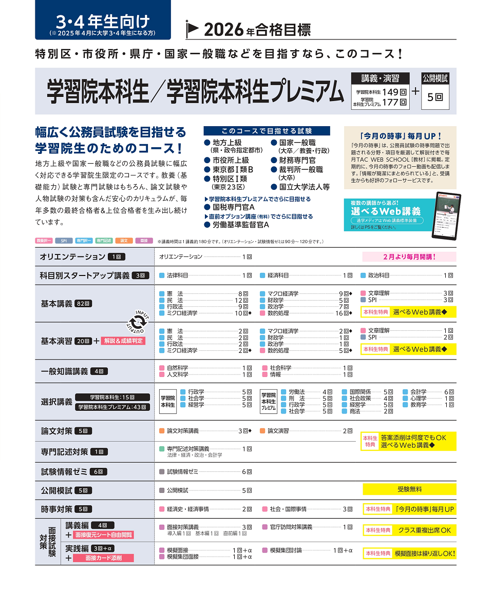 <学習院生限定>公務員をめざすならTACの『学習院本科生』