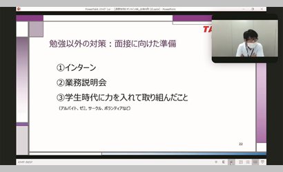 本科生向けに、学習方法・試験情報などホームルーム(HR)を定期的にオンライン配信します。その場で質問等も可能です。TACなら安心して学習を進められます。
