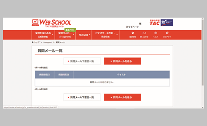 メールで学習内容や受験に関する質問をすることができます。疑問点や不明点は早めに解決することが大切です。TACの講師・受験