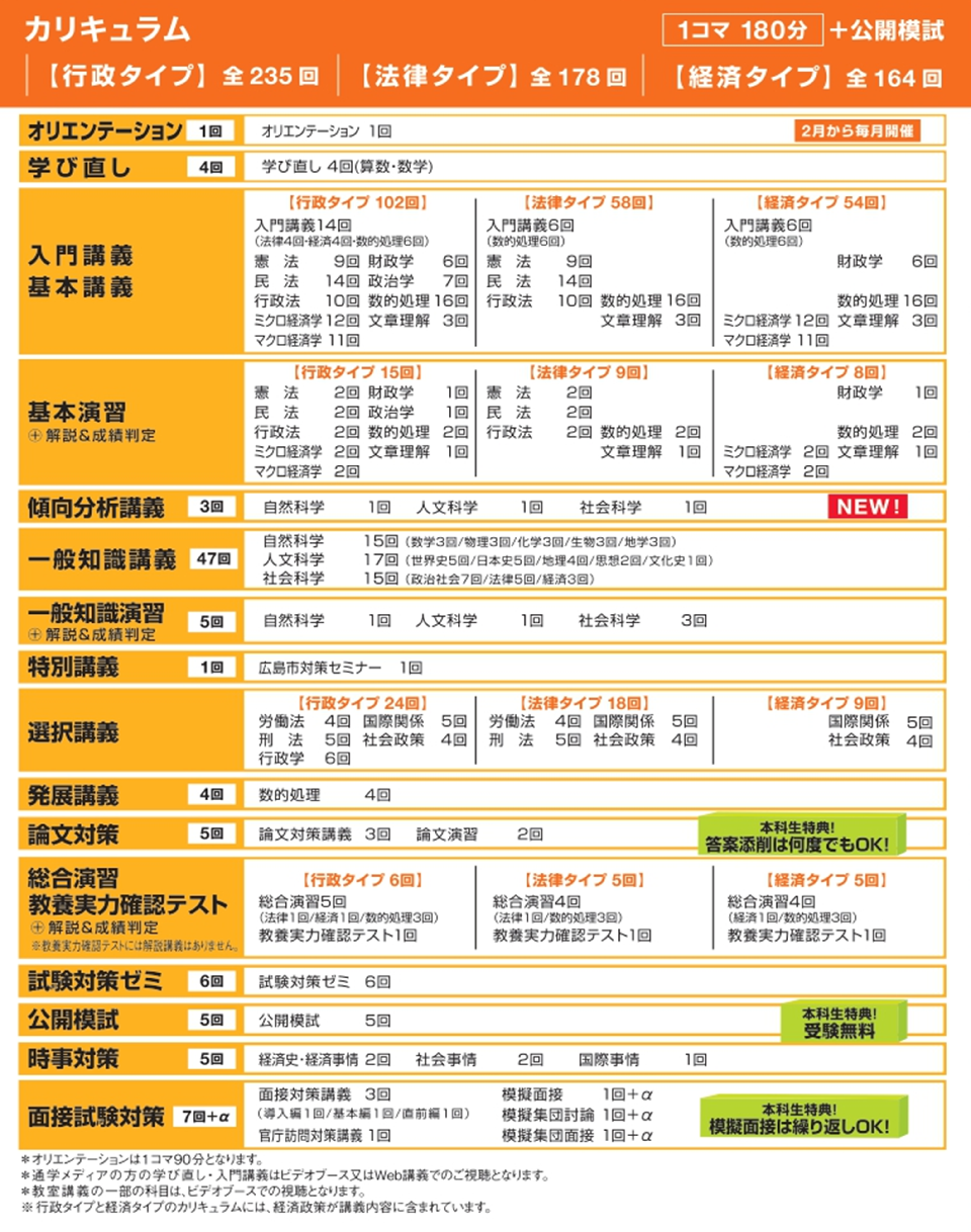 広島市(行政・法律・経済)の受験区分に合わせて3つのタイプからコースを選択できる。