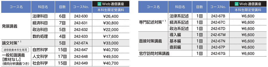 過去にTAC・W セミナー公務員講座本科生を受講された方(合格目標年、学習メディア、試験種は問いません)又は2016年合格目標以降の「Z 会×TAC 共催講座 公務員コース」を受講されたことがある方は、速修本科生を特別価格(再チャレンジ応援割引)でお申込みいただけます。