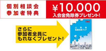 複数回のご利用はお控えください。また、現TAC公務員講座受講生の方は、当相談会ではなく、担任カウンセリング・通信生相談会・民間経験者専用相談コーナーをご利用ください。