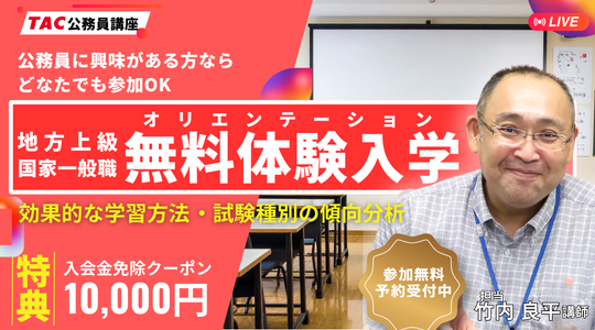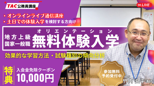 参加無料TAC公務員講座では、お申込み前に実際の講義を無料で体験受講し、雰囲気を体感できます。