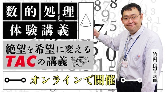 苦手な方が多い図形分野を扱うミニ講義です。空間把握とも呼ばれるこの分野は、ちょっとしたコツで克服できるのが特徴です。図形が苦手な方はもちろん、得意な方でも時短と正答率安定に繋がる内容となっています。絶望を希望に変えるTACの講義を是非とも体験してください!