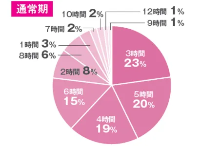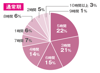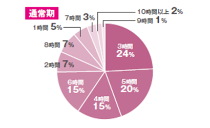 通常期の平均学習時間は3時間と答えた方が25%で1位。次いで4時間・5時間となりました。ちなみに全回答者の平均は4.4時間でした。