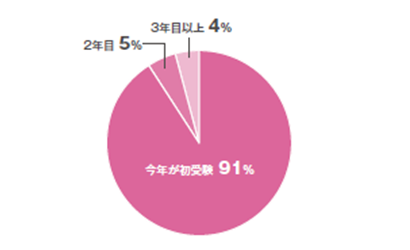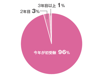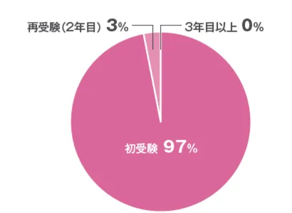 はじめての受験で合格したという方が94%となりました。予備校を活用することで、今回の受験で一発合格を目指すことが可能と言えるでしょう。