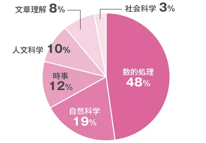 不得意科目の上位は、やはり文系の方が多く苦手とする数的処理でした。また時事や文章理解を苦手にされる方も多いようです。