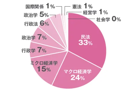 専門試験の不得意科目は、民法が40%で1位、マクロ経済学が18%で2位となりました。いずれも重要な科目ですので、ぜひ克服していただきたいところです。