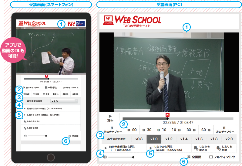 いつでもどこでも自由に講義が受けられる!復習用にもぴったり、アプリで講義DLも可能です。