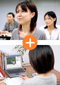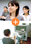 教室講義とビデオブース、さらにWeb 講義まで装備された受講スタイルです。ご自身の都合に合わせて教室の講義に出席するか、ビデオブースで受講するか、Web で受講するか選ぶことができます。教室講義の欠席フォローや復習用として、ビデオブースやWeb 講義を利用することも可能です。