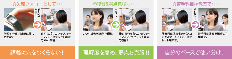 教室講義を収録し、インターネット配信しています。自宅にいながら、迫力の講義を受講できます。