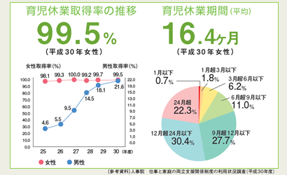 ワーク・ライフ・バランスを実現するための制度があるだけでなく、育児休業・育児時短勤務・介護休暇などの活用を職場全体がバックアップしてくれる環境があるのが公務員の職場です。また現在、女性公務員の採用・登用が拡大しており、男女問わず本人の希望に基づき様々な分野で活躍する機会があります。