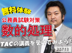 公務員試験の重要科目「数的処理①」の臨場感ある講義を体験いただけます。(約60分の一部抜粋版)