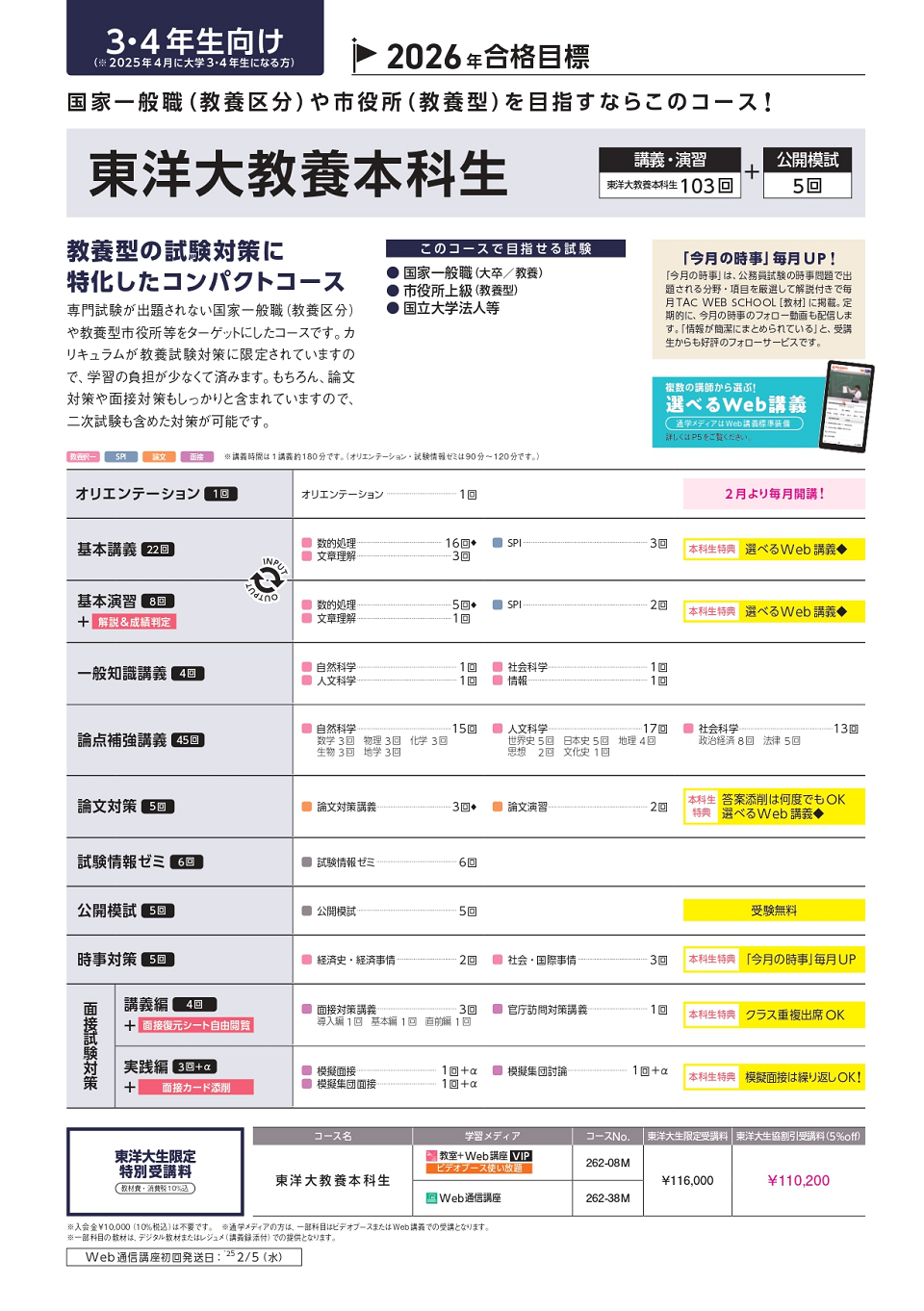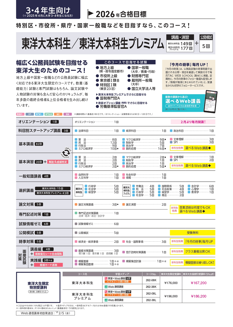【2026年合格目標】大学新3・4年生向け(2025年4月に大学3・4年生になる方):東洋大本科生/東洋大本科生プレミアム/東洋大教養本科生